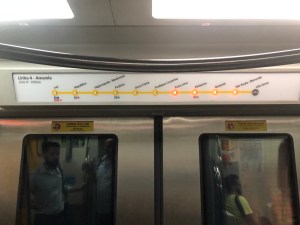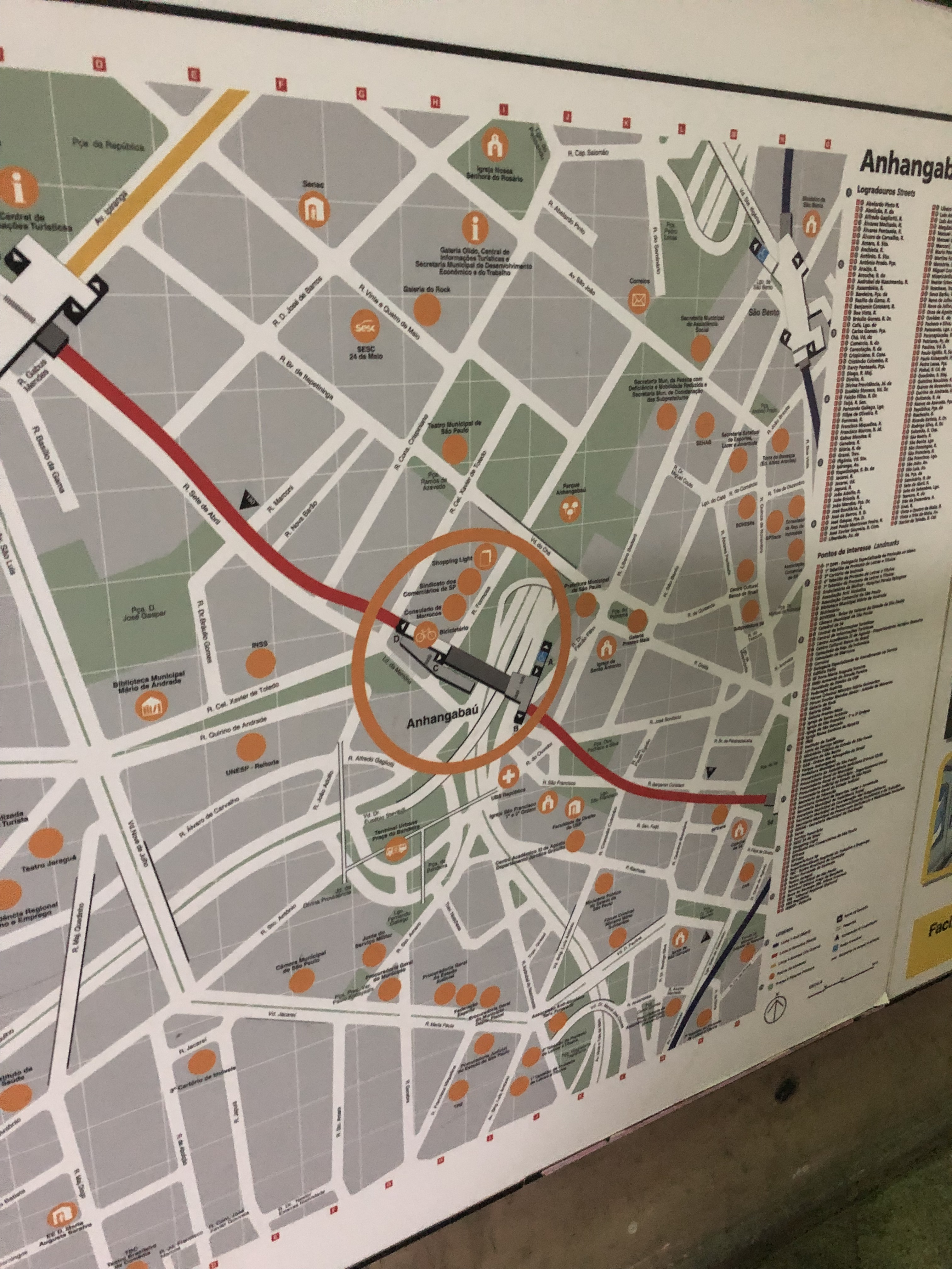 As we entered the Prefeitura, we noticed there were a lot more police on duty. We were told that unrest over recent rises in public transport prices was expected. After dinner at a nearby eaterie, we couldn’t go the nearby way into Anhangabau metro station (see metro map) but had to walk what felt like a couple of miles to a much further entrance.