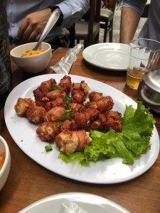 ![]() ‘Bragança sausage mix: 500 g of fried sausage pieces: 1/3 traditional, 1/3 provolone, 1/3 in Bragança style. Served with farofa, vinaigrette and a basket of bread (pieces)’ |