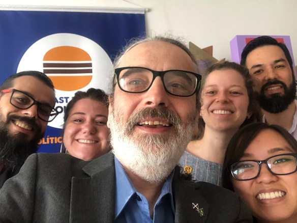 In the morning, Hugo, Leandro and I met with Júlia Carvalho, Lays Morimoto and Thays Esaú of Fast Food da Política. They work to explain and hence increase participation in Brazilian politics via games. I got to see two of these.