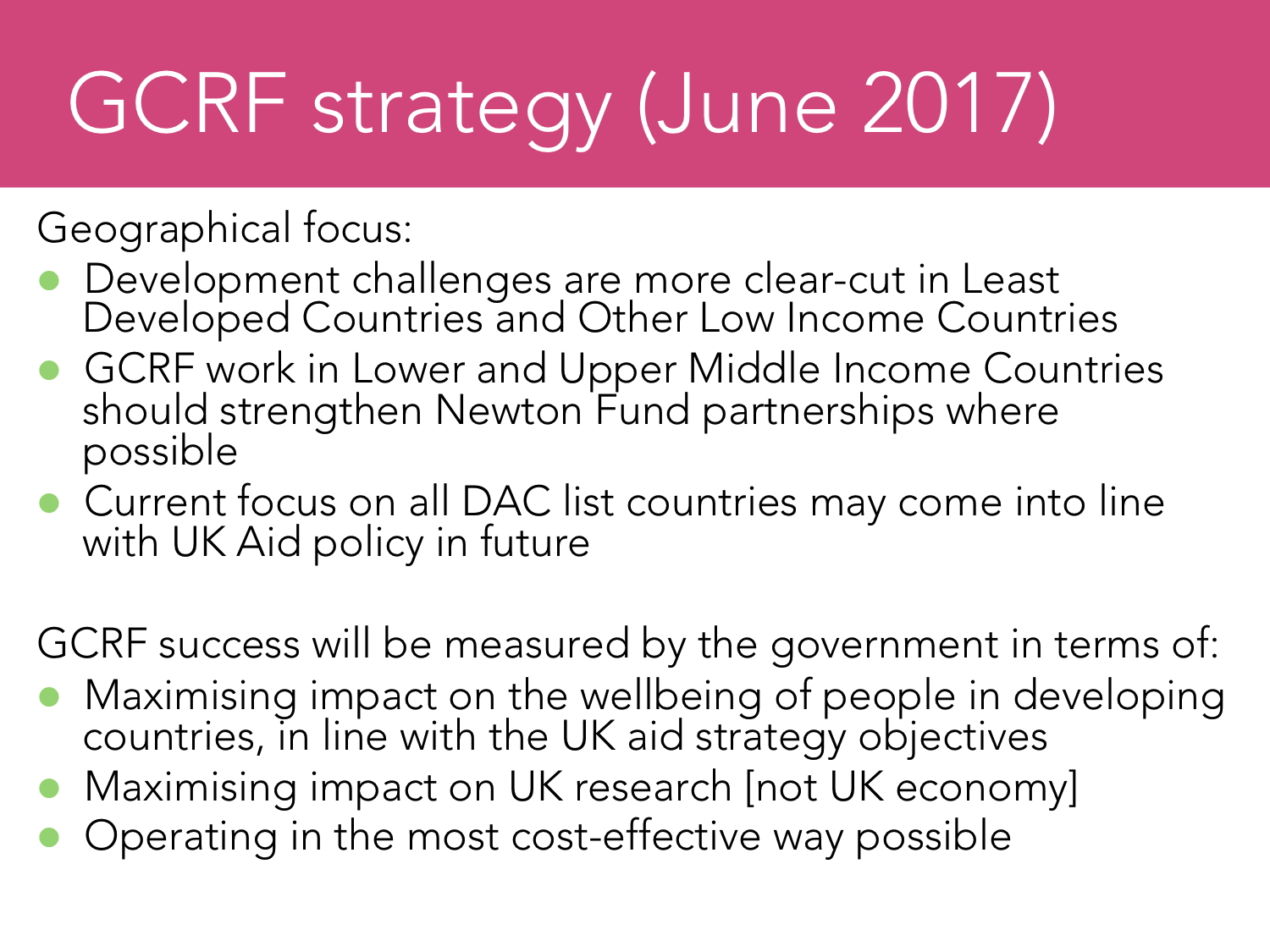 Other relevant parts of the GCRF strategy are shown in Figure 3.