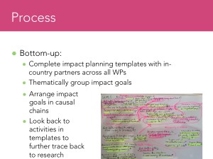 Mark also advised that researchers should be realistic, so they should watch out for risks and assumptions in their funding proposals. He noted that the GCRF funding panel accepts that nothing is guaranteed. My colleague Wegene Demeke suggested there could be impact on professional practice. Hence such researchers should gather early evidence (i.e. a baseline), then look for evidence of impact.
