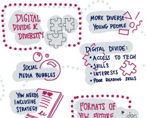 Gunilla went on to cover the Future Foresight project. She also noted that ‘Challenges with digital divide and diversity was much emphasized by all three groups that were involved in the foresight pilots (youth, youth information workers and youth experts)’. Some of the challenges are shown in Figure 3 and Figure 4.