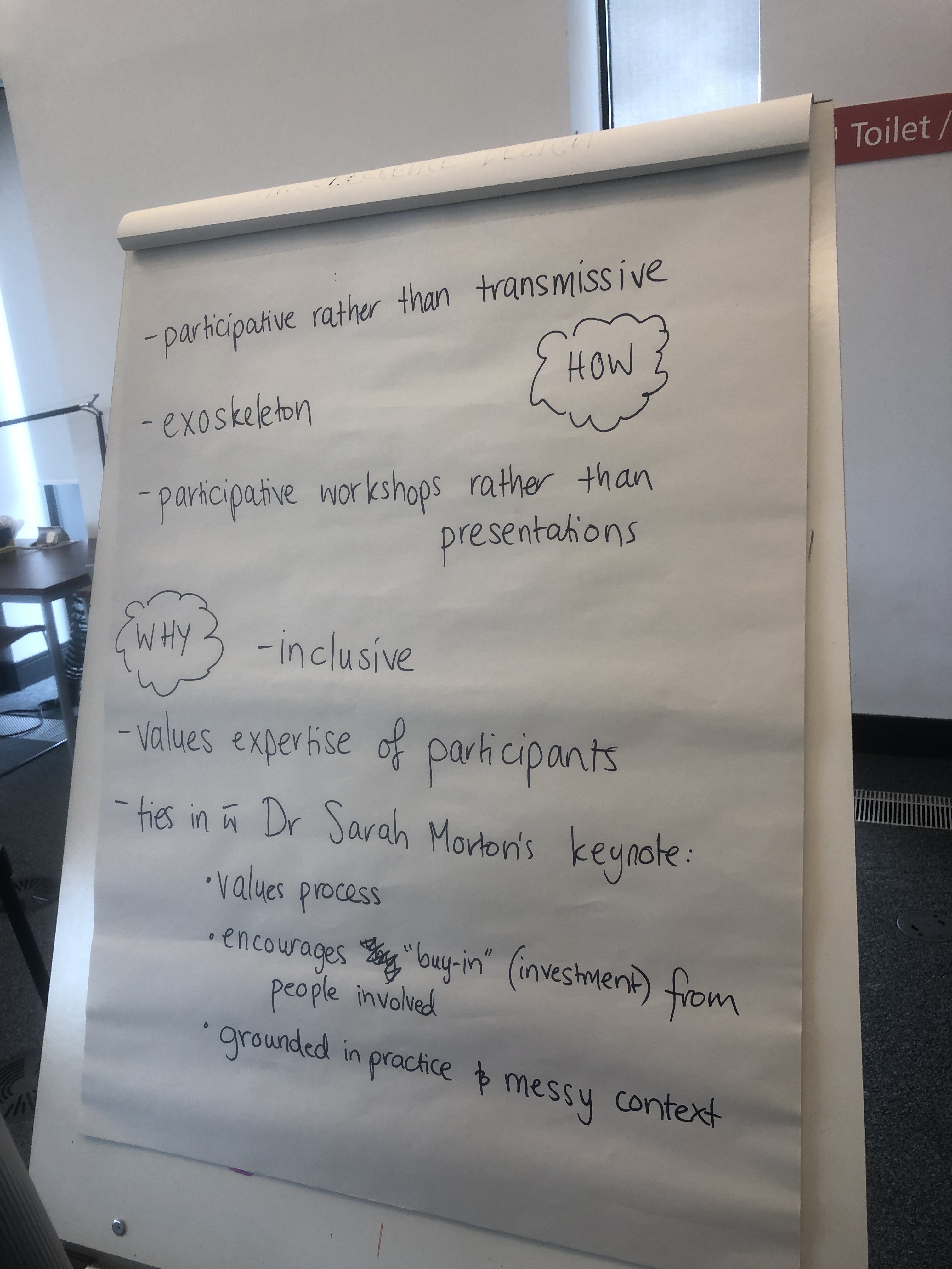 [We intended to video these presentations but my GoPro failed. Here are photos of the flipcharts drawn up by RIVAL-people.]