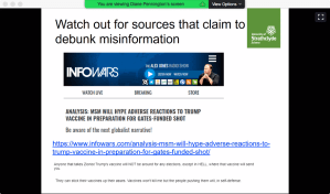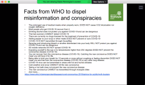 Kaitlin mentioned several types of misinformation, e.g using a sauna instead of going for treatment for a major, fatal condition. (I ask WTF?), or hanging turnips around to help with a certain disease. (I’m not going to say which in case any other people try this.)