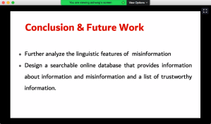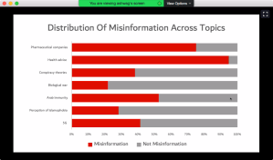 The findings included the distribution of misinformation across topics, and when the spread of various new types of misinformation started. The greatest amount of misinformation is in health advice. Then there is more work to do!