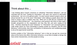 Aylin Ilhan introduced the ASIS&T European chapter folk, and did some audience-research.