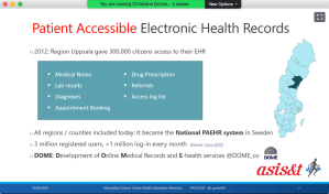 Christiane said that, in Sweden, the movement from paper records to e-records was piloted in Uppsala. You can see who has looked at your records. I would want to know when my doctor looked at my records. Was it 30 seconds before a consultation, or several minutes, to allow time for thought? Or is 30 seconds sufficient for a good doctor?