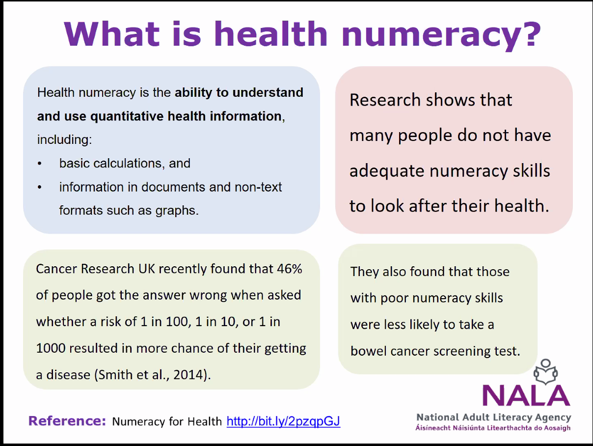 Inez then noted that health literacy and numeracy rely on mutual understanding. Here is Inez’ definition of health numeracy: