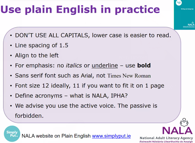 Based on such findings, NALA has been lobbying with some success, in that Ireland’s health service executive is taking on relevant objectives.