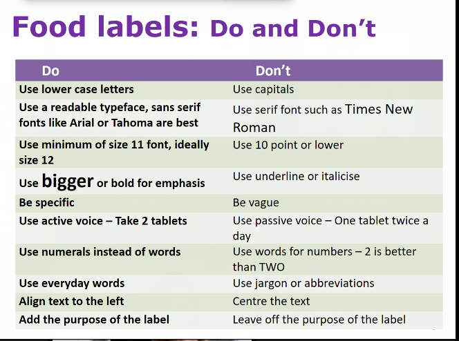 Inez then delved into how we can communicate more effectively. Part of this is using simpler words and better presentation of words and numbers, including on food-labels. I have a deep and personal loathing of Times New Roman and lack of leading (vertical space between lines of text). The final point on the the ‘plain numbers’ slide is – or should be – standard publishing practice anyway!