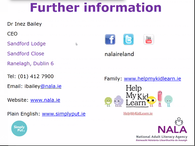 Inez is the chief executive of the National Adult Literacy Agency in Ireland. She began by asking ‘what is literacy?’ Part of her answer is ‘it’s a social practice’: