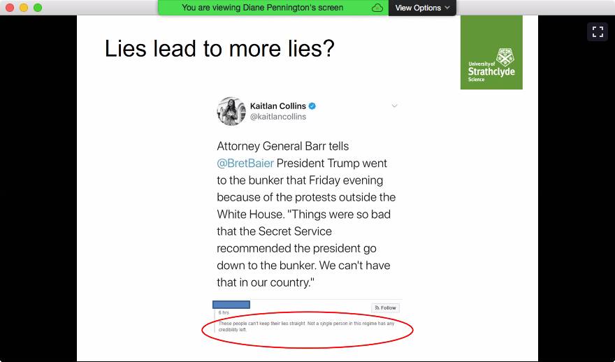 Diane talked more about psychology, and why followers of a certain ‘world-misleader‘ (again, my term) might ignore ‘facts’ about certain coronavirus ‘cures’. There is a power-struggle over cognition in the coronavirus context.