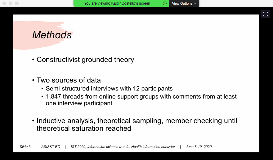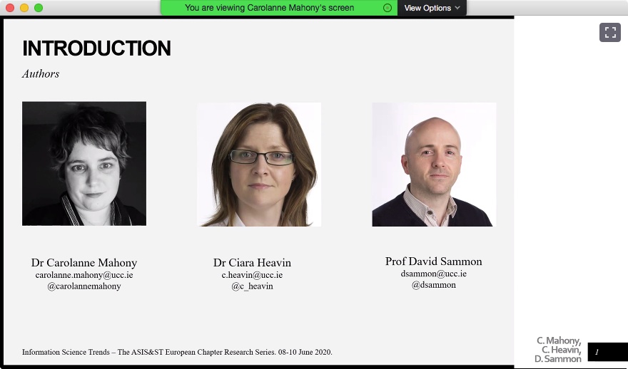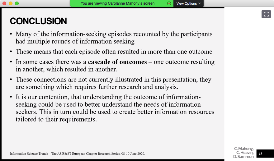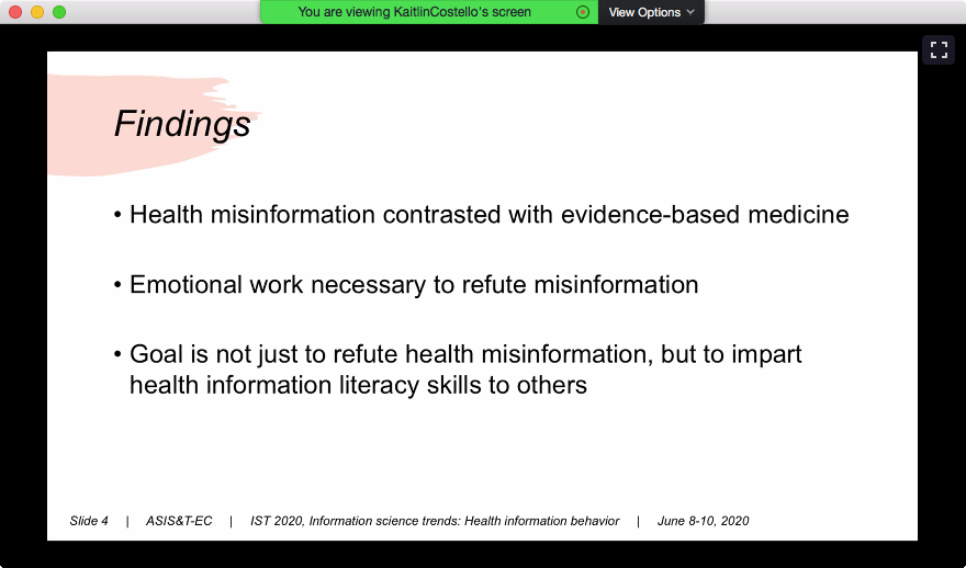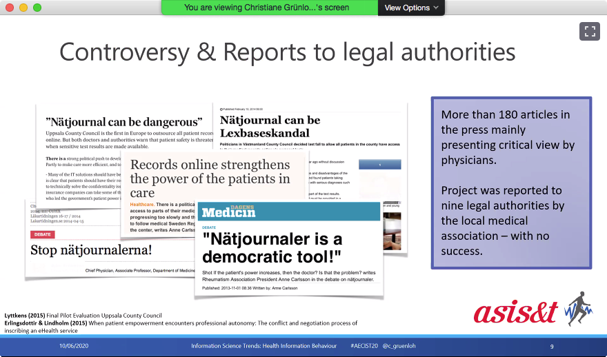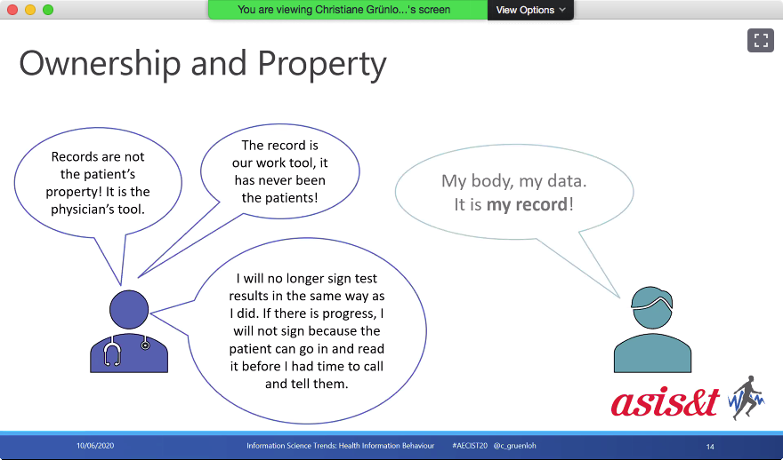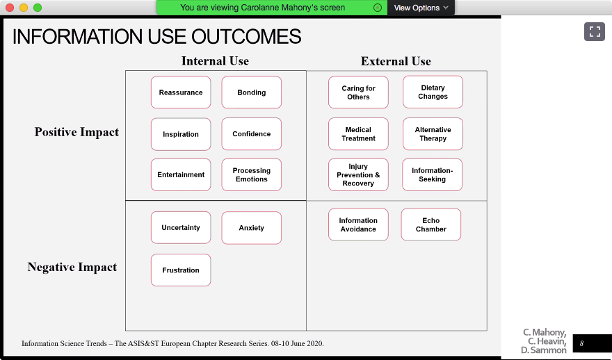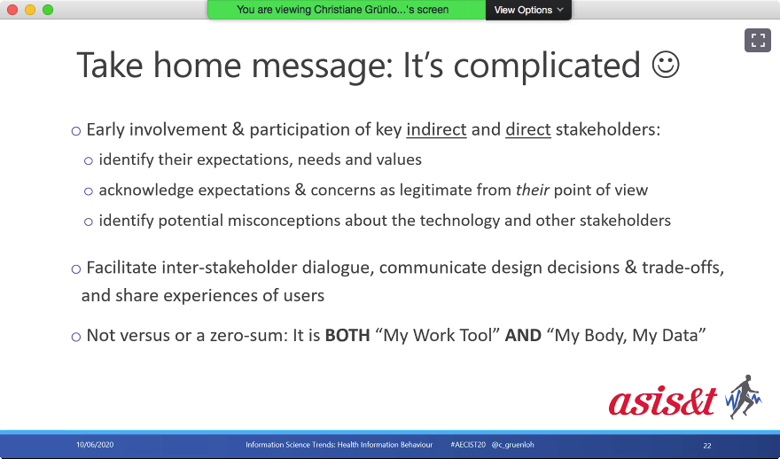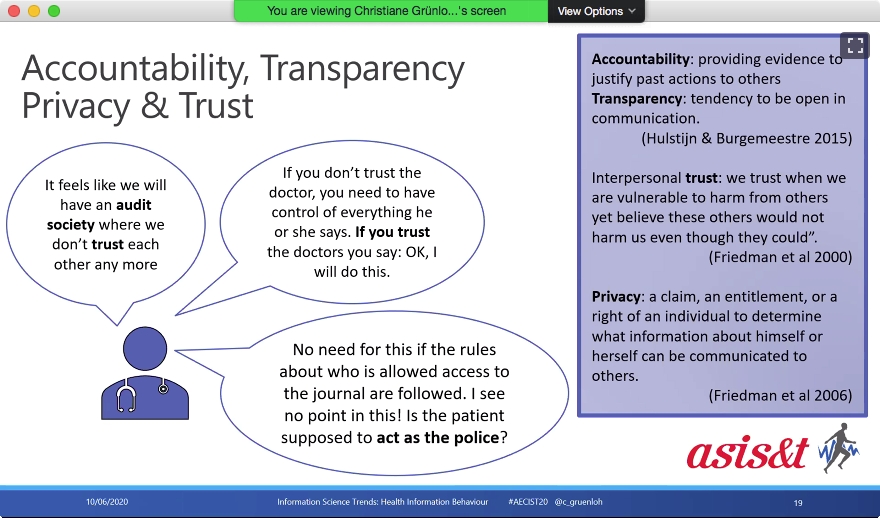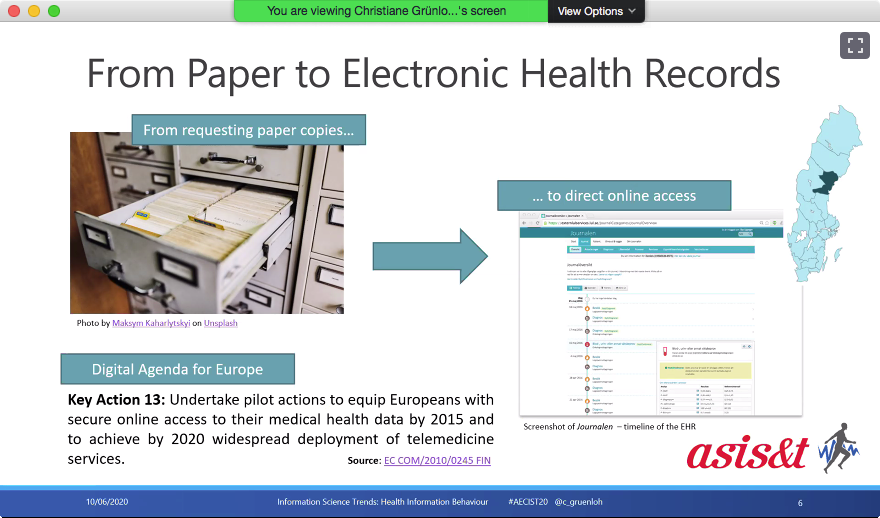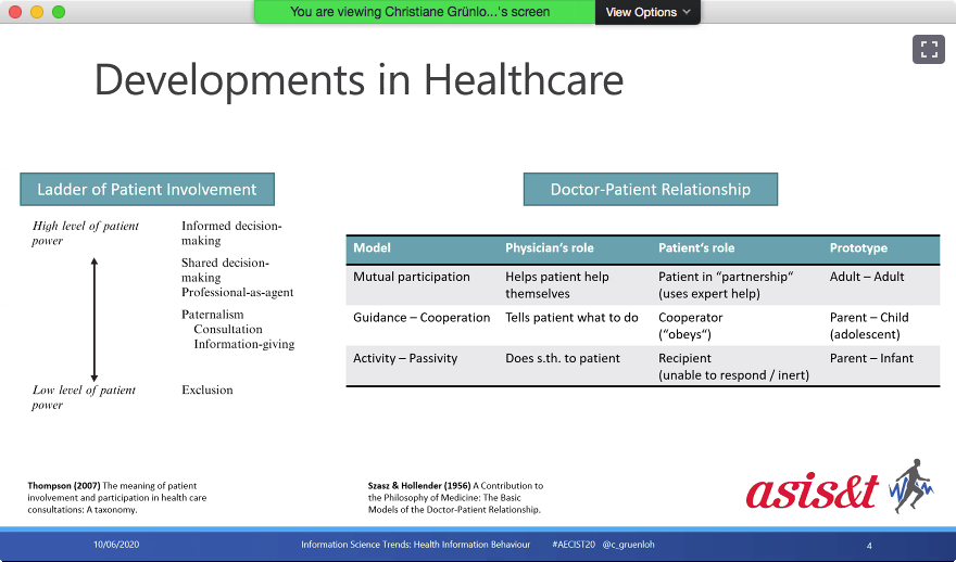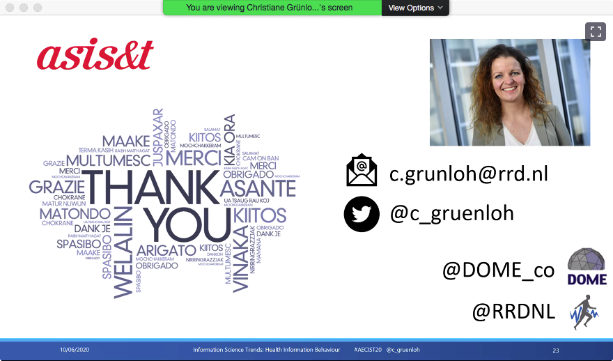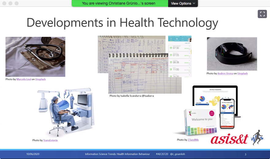 I recently attended an European chapter of ASIS&T Information Science Trends online conference This year it focussed on health information hehaviour. The following are my digitally-assisted memories of #AECIST20, i.e. adaptations of my live-tweets from the event. As ever, this report is mostly to help me sort what I need to do from what I want to do after being stimulated by many fascinating presentations. Any mistakes or misrepresentations in the below are of course my mistakes.