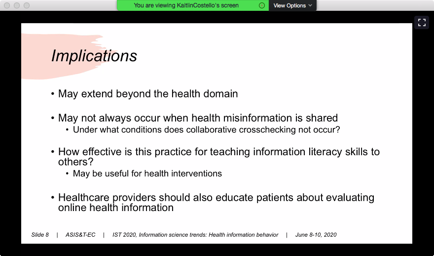 Kaitlin then noted some of the implications of this work. For me, the final implication (healthcare providers should also educate patients about evaluating health information) is very reminiscent of yesterday’s keynote.