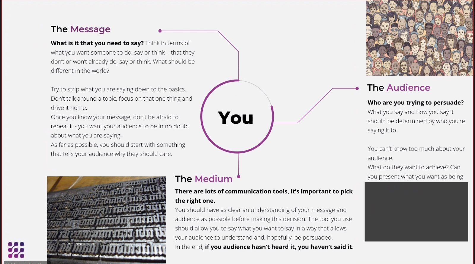Once you have thought about question and audience, think about medium from who you want to connect with and how to connect with them.