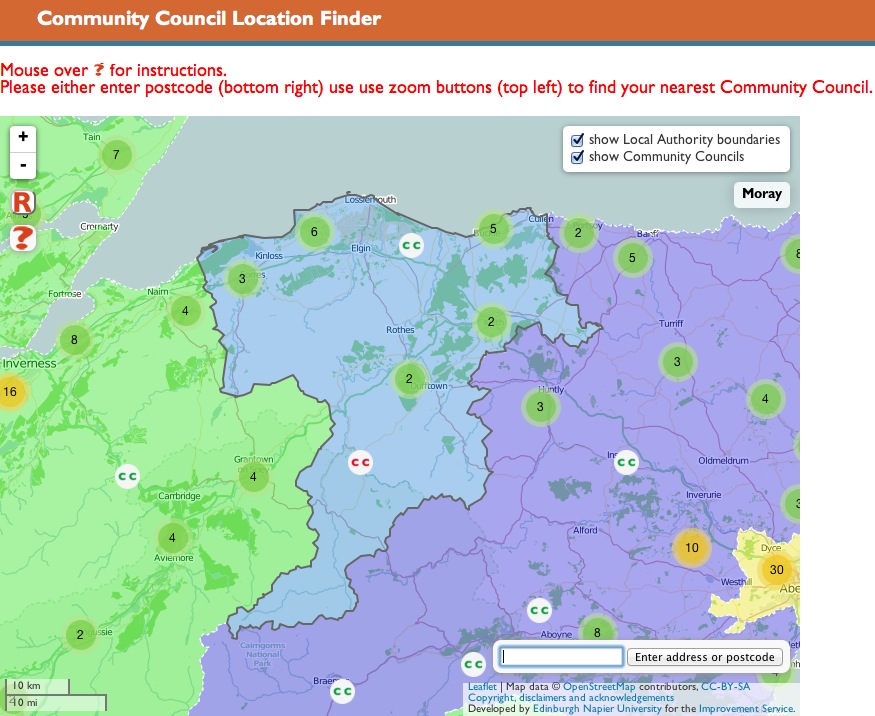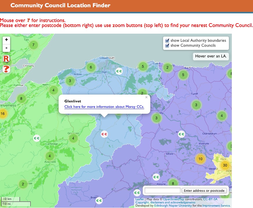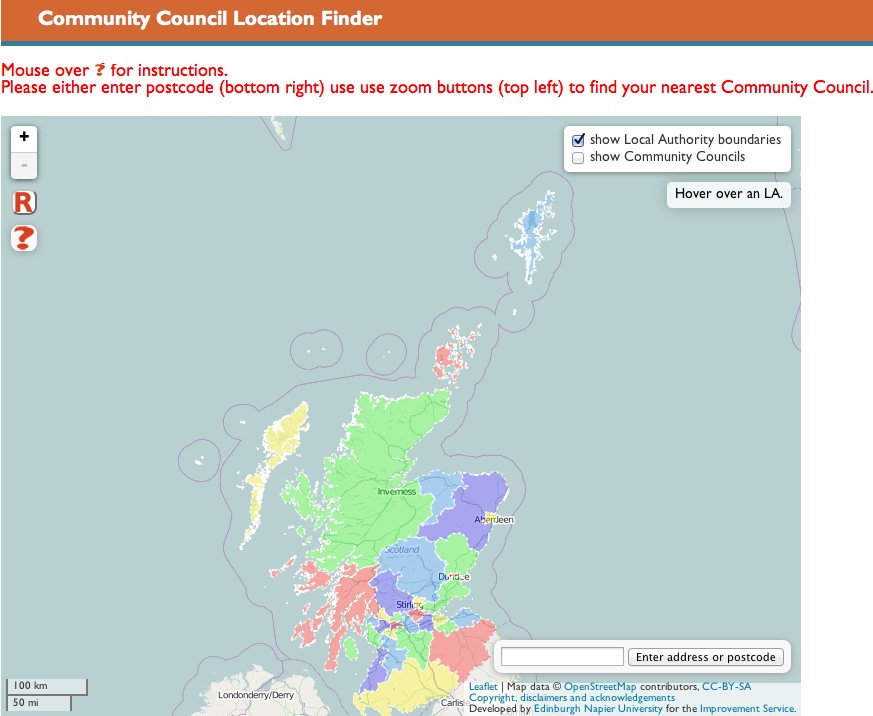 So I reasoned ‘if I can’t add their stuff to mine, can I add my stuff to theirs?’ That is, could I swap in my LA and CC data sets and use leaflet’s code to colour them and pick out data to be displayed in their external control? This seemed to go OK until I added in the geocoder (the bit for entering an address to zoom to that area of the map. This code failed, so everything that should have been processed after it wasn’t even reached.