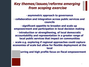 - Bruce Ryan: James Mitchell now says: (5) scale, e.g. exploring if regional approaches could get economies of scale but flexible deployment at the local; (6) much focus on fiscal autonomy/empowerment.